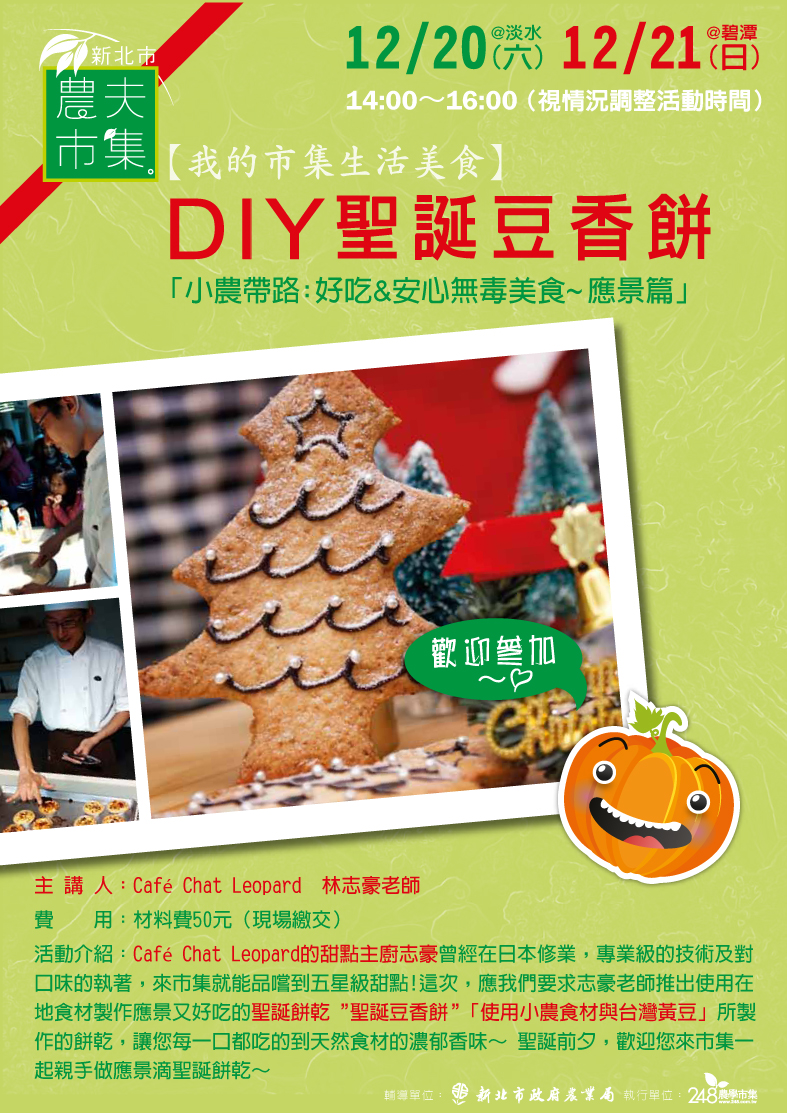 志豪老師,將現場示範製作聖誕豆香餅,來參加的大小朋友還可以動動手裝飾屬於自己的聖誕餅乾喔!